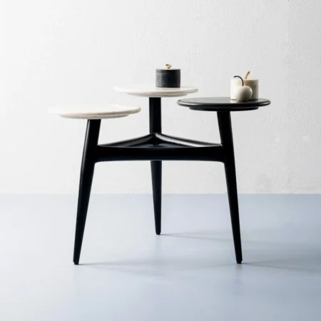 Tri Marble Tiered Iron Base Black 3 Marble Top Coffee Table