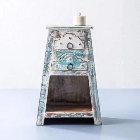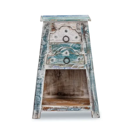 Selene Almirah Reclaimed Wood Bed Side White Distress Finish