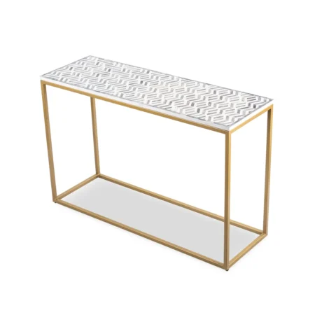 Coastal Iron Base Brass Type Coated Bone Inlay Console