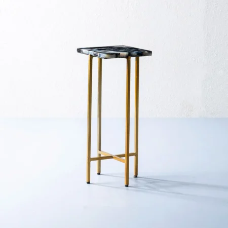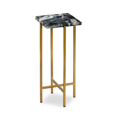 Cosmic Iron Base Brass Type Coated Agate Marble Side Table