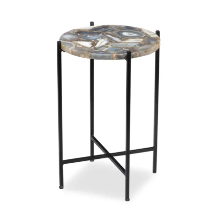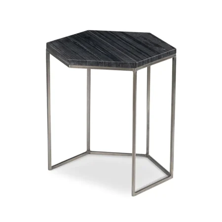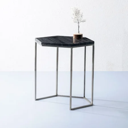 Shaded Black Iron Base Black Hexagon Like Marble Top Side Table