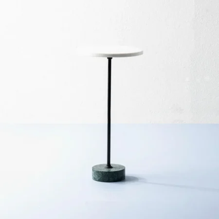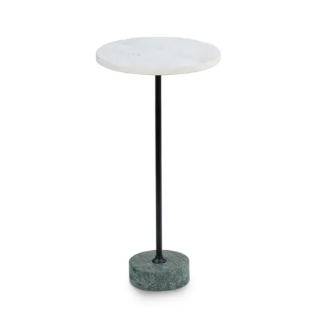 Candid White Iron Base Black Coated Green And White Marble Side Table