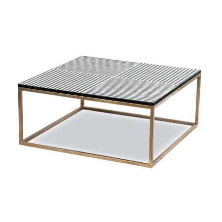 Bicolour Iron Base Brass Type Coated Bone Inlay Square Coffee Table