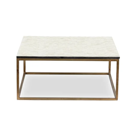Silver Tides Iron Base Brass Type Coated Bone Inlay Square Coffee Table