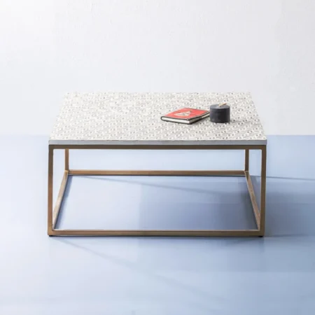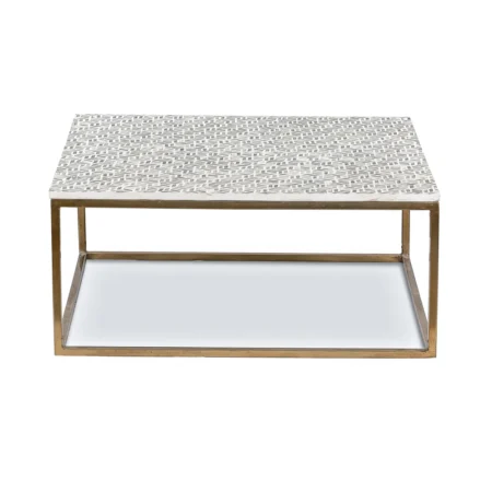 Mirage Iron Base Brass Type Coated Bone Inlay Square Coffee Table