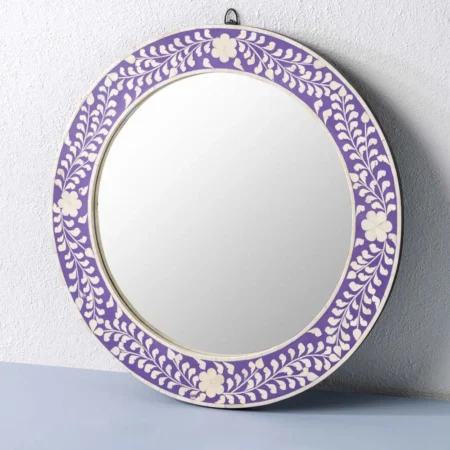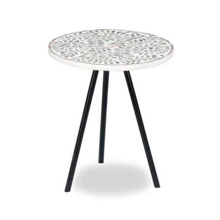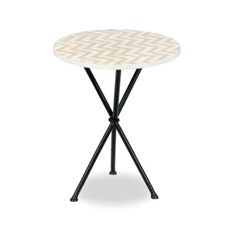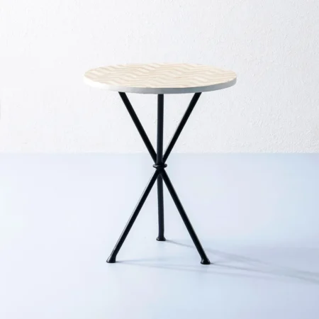 Sculpted Stripes Wooden Bone Inlay Round Side Table