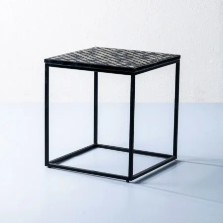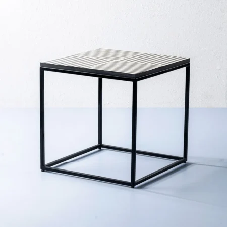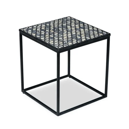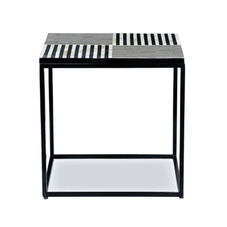 Bicolour Iron Base Black Coated Square Side Table Bone Inlay