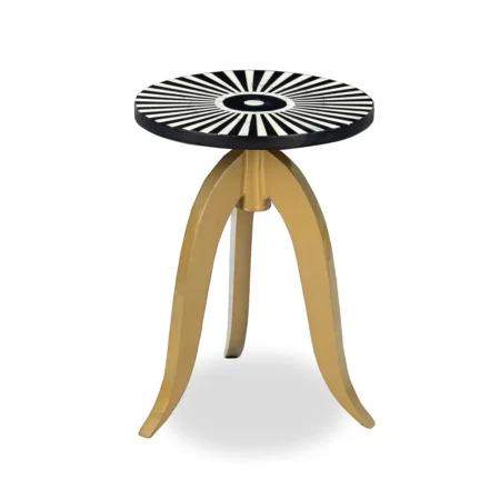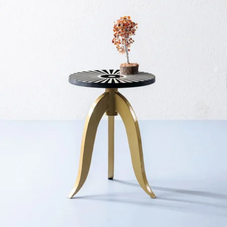 Bicolour Iron Base Brass Type Coated Round Side Table Bone Inlay