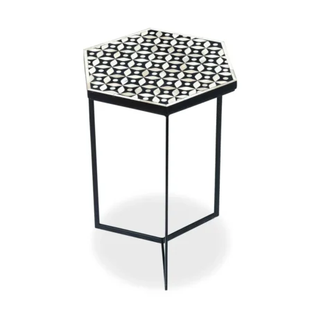 Starry Night Base Black Coated Octagon Side Table Bone Inlay