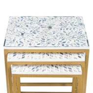 Azure Petals Iron Base Bone Inlay Nested Table Set