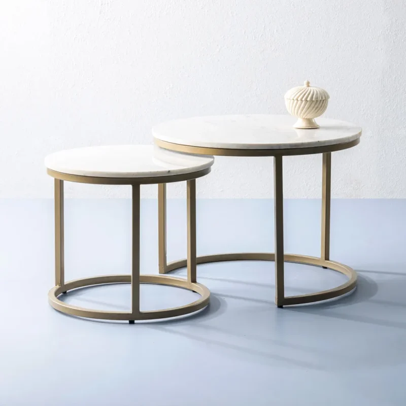 The Clear White Iron Base Brass Type Coated Round Marble Side Table captures the essence of Brown Apricot: where luxury meets authenticity. It stands as a testament to our dedication to crafting pieces that resonate emotionally within your home—a reflection not only of style but also warmth, heritage, and connection.