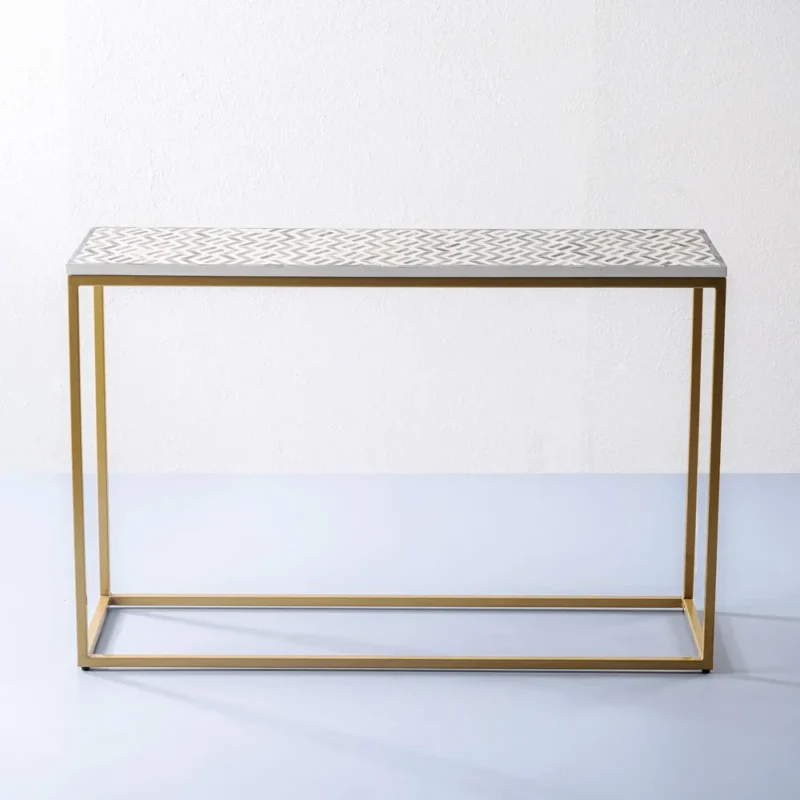 Embrace the Essence of Elegance with the Daylight Iron Base Marble Top Brass Type Console