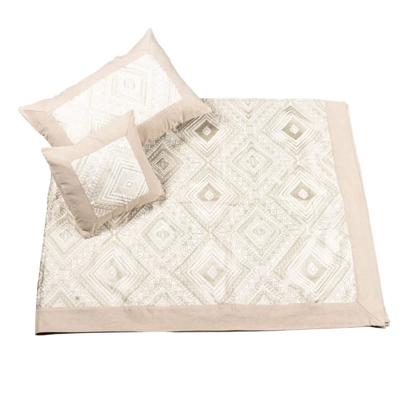Handcrafted by skilled artisans, this cushion cover embodies the perfect fusion of traditional techniques and contemporary design. The soft peach hue resonates with warmth, evoking feelings of serene sunsets and gentle summer days. Each stitch reflects our commitment to quality and artisanal passion, making it not merely a decoration but a treasured part of your living space.