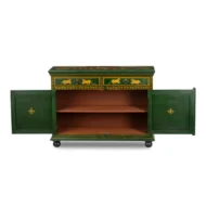 Step into a world where tradition intertwines with modern elegance. The Raasleela Wooden/Painted Side Board, an exquisite creation from Brown Apricot, invites you to transform your living space into a sanctuary of beauty and warmth. Crafted with artisanal passion, this sideboard is more than just furniture; it is a storytelling piece that embodies the essence of Rajasthan’s rich heritage.